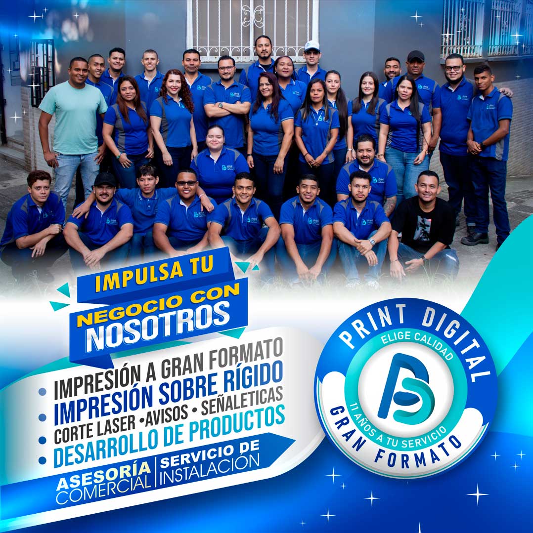 PRINT DIGITAL S.A.S es una empresa líder en el sector gráfico, ubicada en Medellín, respaldada con una trayectoria de más de 11 años de experiencia en impresión a gran formato, con innovación en el sector mobiliario, generando espacios atractivos en hierro y madera. Contamos con maquinaria moderna de impresión digital y acabados, en donde realizamos todos nuestros procesos, brindando productos de alta calidad: pendones, vallas, pasacalles, avisos, sandblasting, corte plóter, etiquetas adhesivas, microperforado, cuadros en MDF, avisos en acrílico, tijeras publicitarias, porta pendones, corte láser, adhesivos laminados, pendones, vallas publicitarias, entre otros.